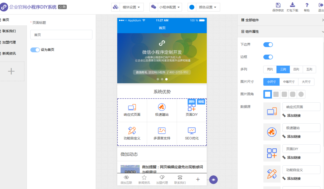 微加建站系統持續(xù)更新更多最前沿的功能模塊和最前衛(wèi)的效果插件